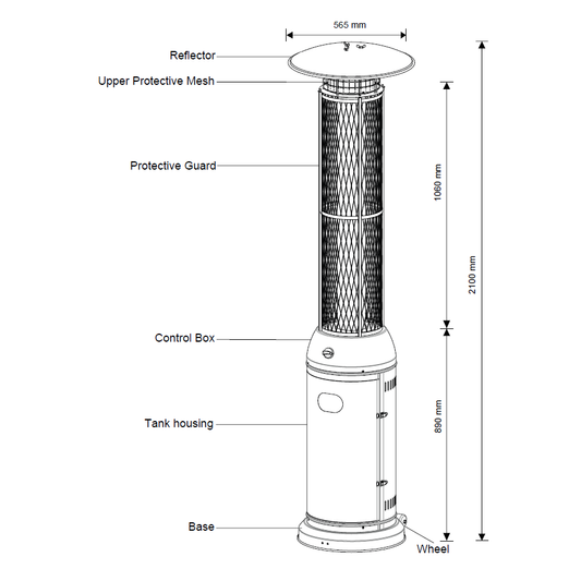 Gas Patio Heater - Circular Glass Tube Style - 2.1m Tall
