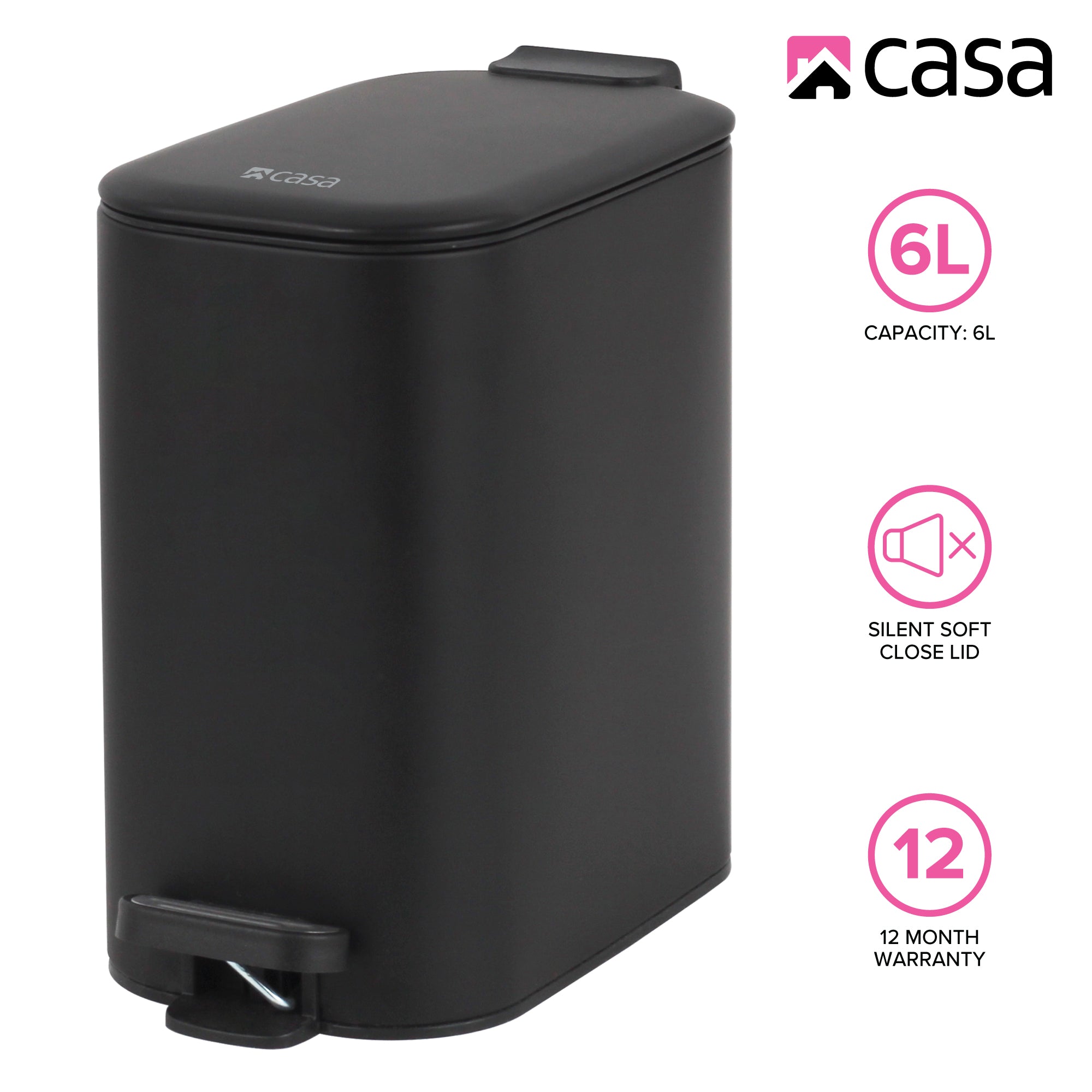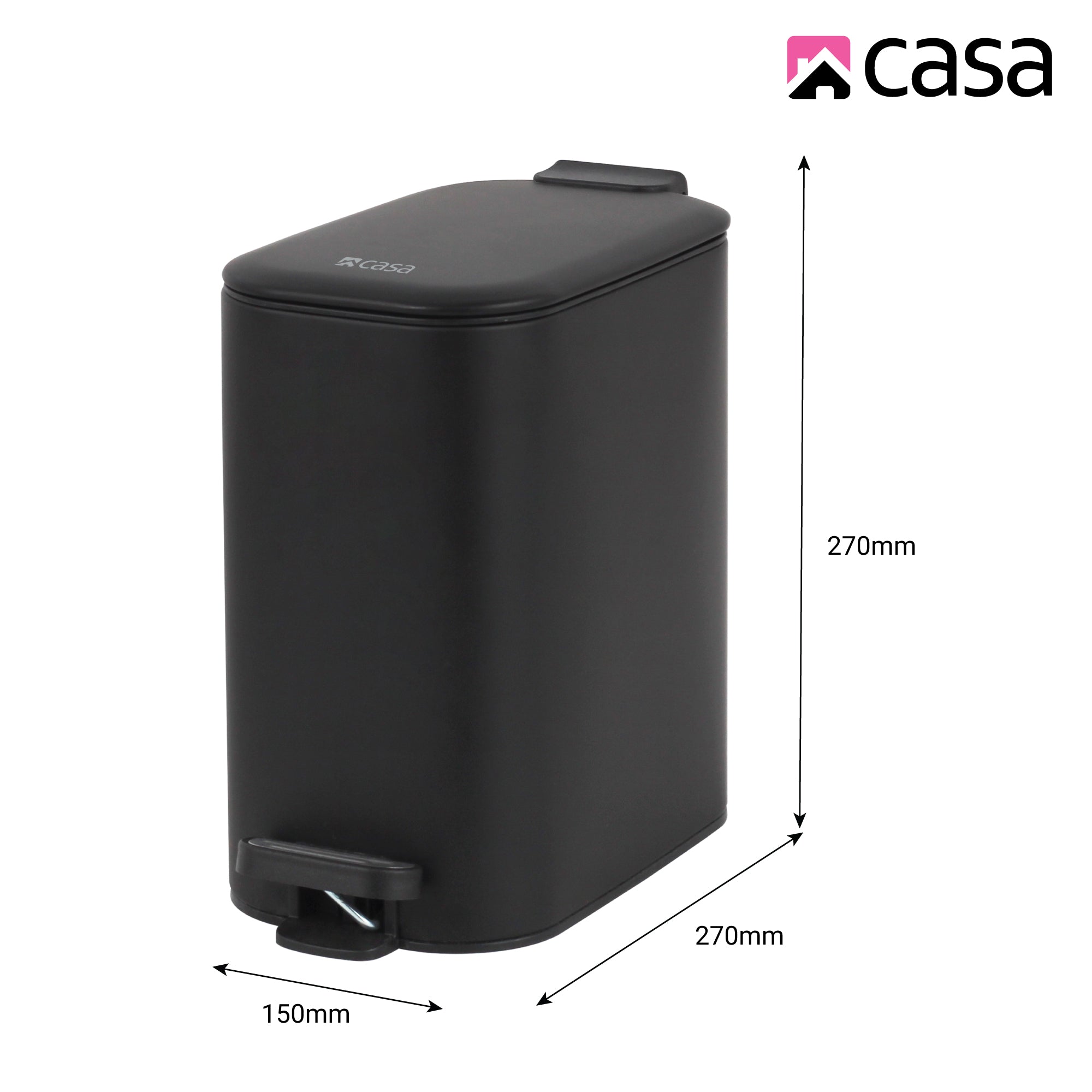 6L Steel Pedal Bin | Slimline Rectangle | Portofino