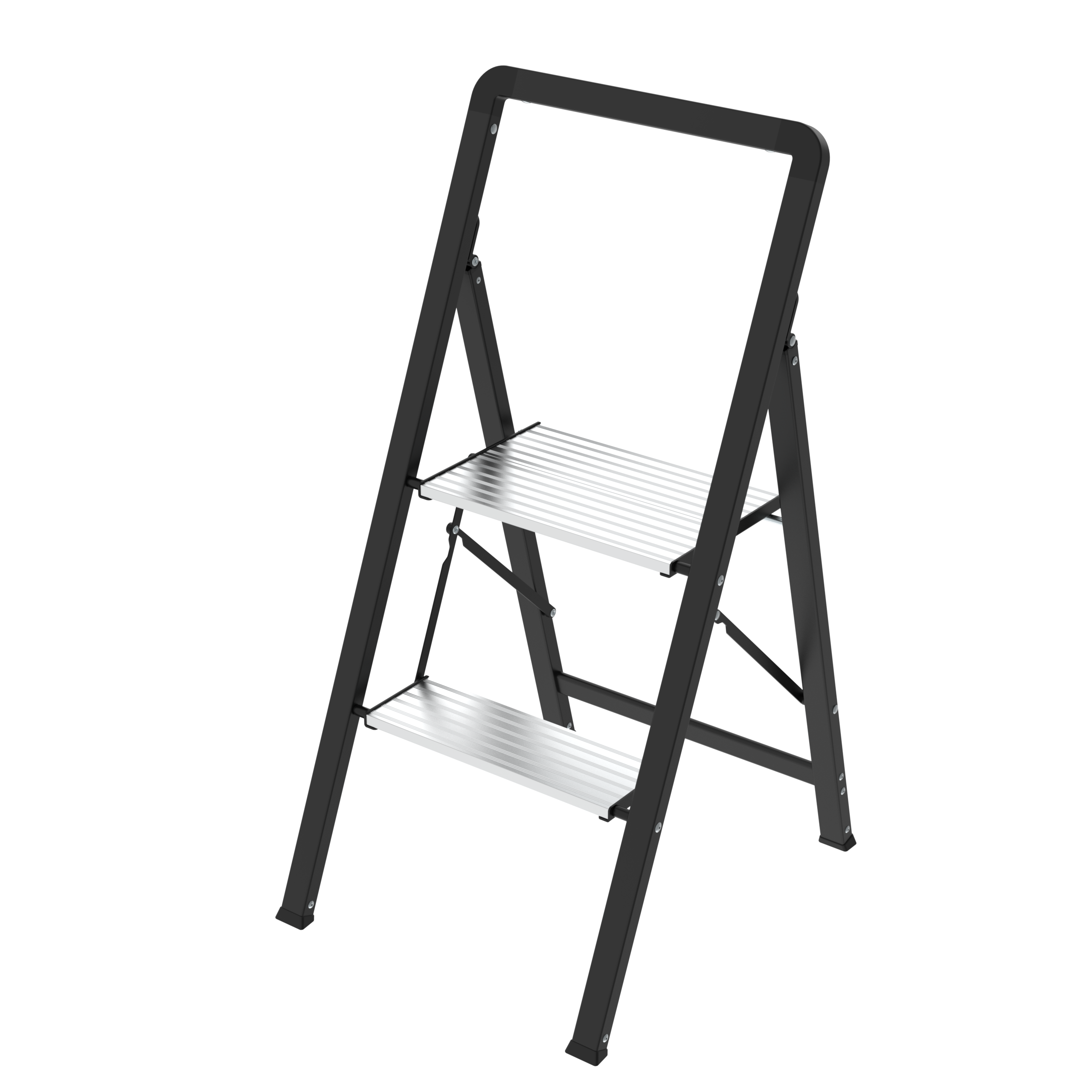 Folding Step Ladder – Steel & Aluminium – 2 Steps – Black/Silver